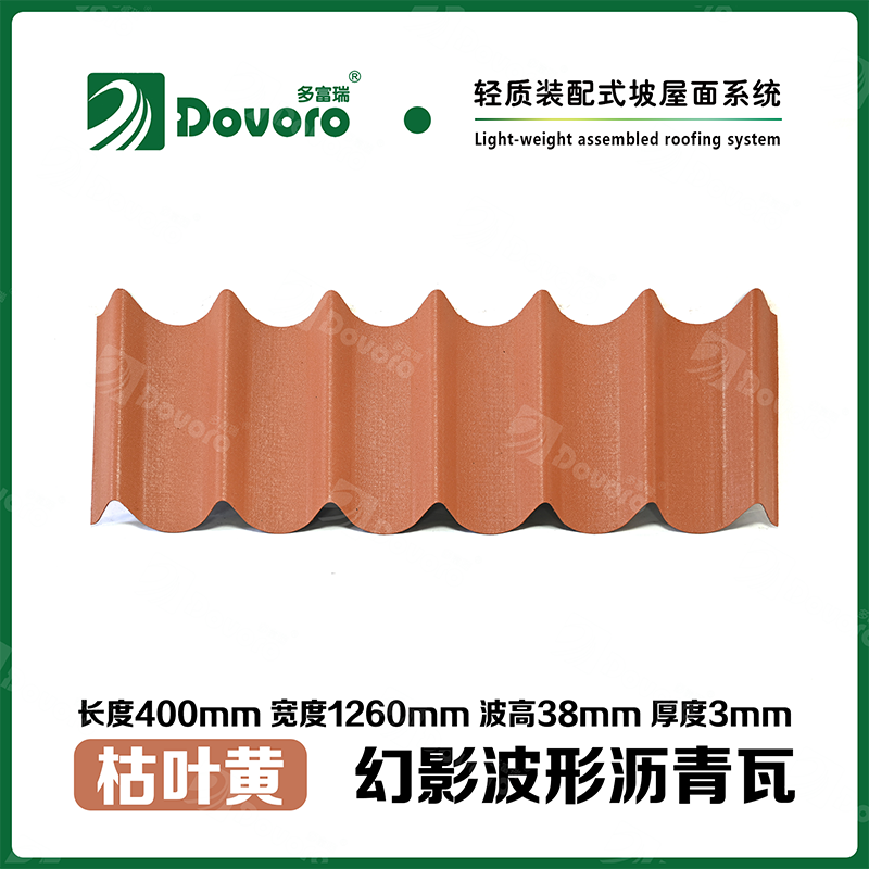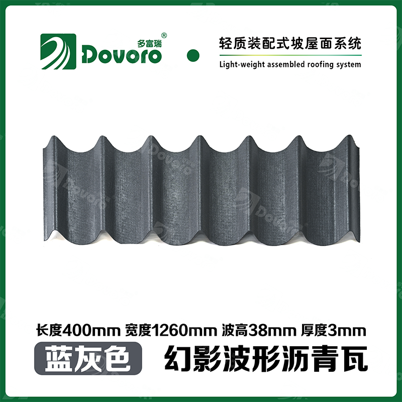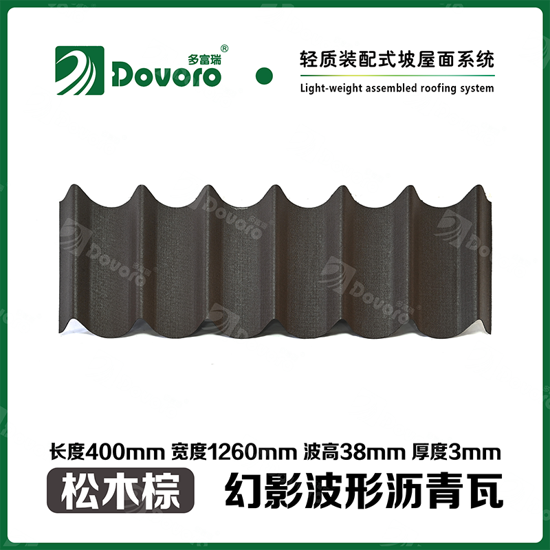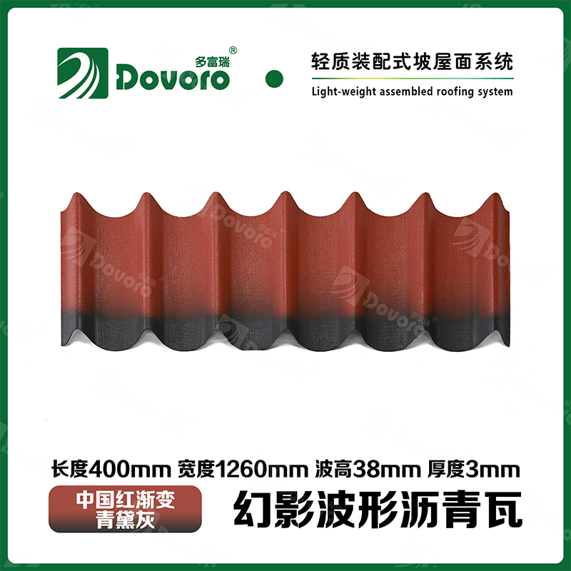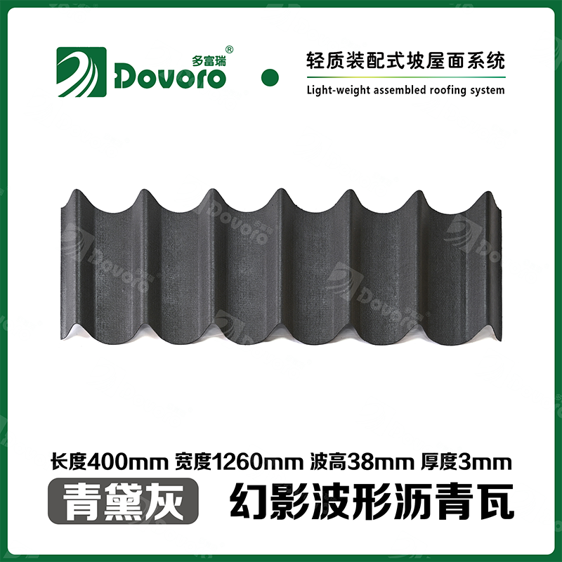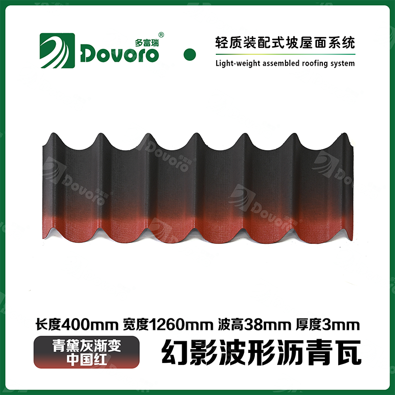 多富瑞幻影波形瀝青瓦是由礦植物纖維板經(jīng)過整形后浸漬瀝青而成,一次成型的基層板在高溫下浸漬瀝青,使瓦材整體性更加牢固;熱固性樹脂保證了瓦材的強(qiáng)度和剛度;進(jìn)口原料配合先進(jìn)的著色工藝確保顏色持久、混色噴涂工藝使瓦材外觀高雅、色彩美觀、立體質(zhì)感。