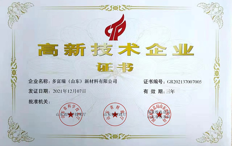 公司加大科技投入和引進專業(yè)技術人才,建立了國內第一個專業(yè)實驗室、技術研發(fā)中心,并積極引進先進設備、改進工藝、開發(fā)系列新產品,2021年11月正式認定成為高新技術企業(yè)。