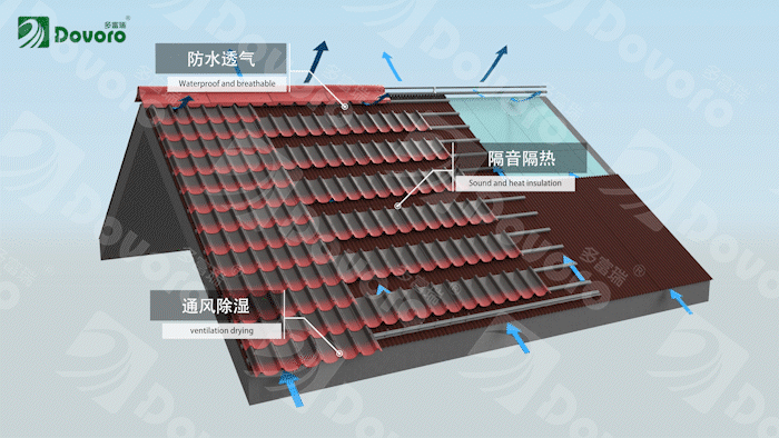 即使是鋪設單層波形瀝青瓦,或是僅僅使用防水板作為防水墊層,其波形的設計都能給屋面帶來可以通風的空間,使屋面內(nèi)部始終保持干燥,杜絕滲漏發(fā)霉的現(xiàn)象。