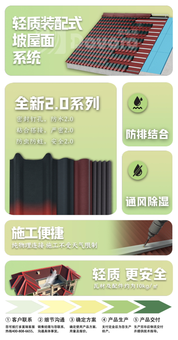多富瑞賦予波形瀝青瓦與防水板獨特的波形,幻景、幻彩、防水板均有不同的波形設計。波形比平直的造型花費更多的材料與工序,能給一個屋面帶來什么?