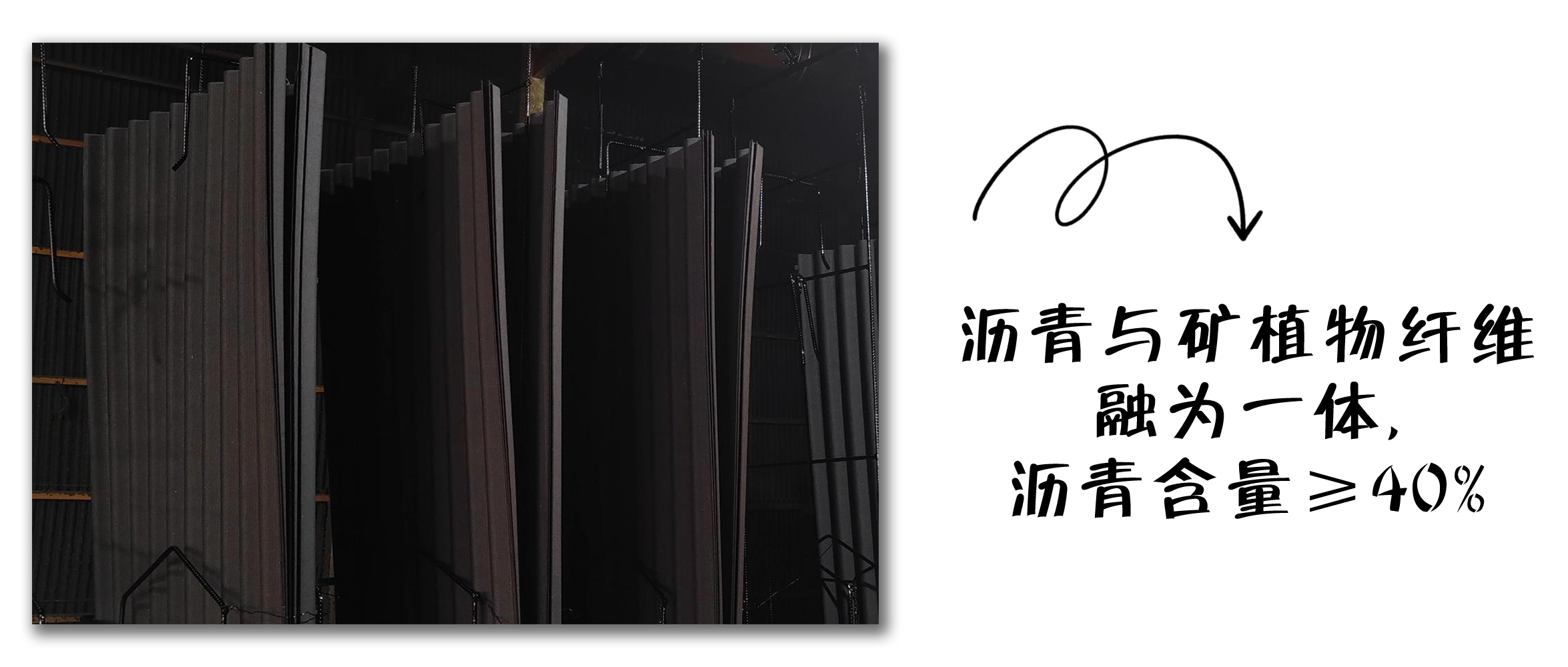 波形瀝青瓦使用礦植物纖維和瀝青作為主要的原材料,瀝青通過高溫浸漬后填滿礦植物纖維中的孔隙,與礦植物纖維融為一體。加上其他原材料的配比添加,瀝青可以穩(wěn)固地發(fā)揮其防水效果,不會因風(fēng)吹日曬或切割安裝導(dǎo)致瀝青脫落。