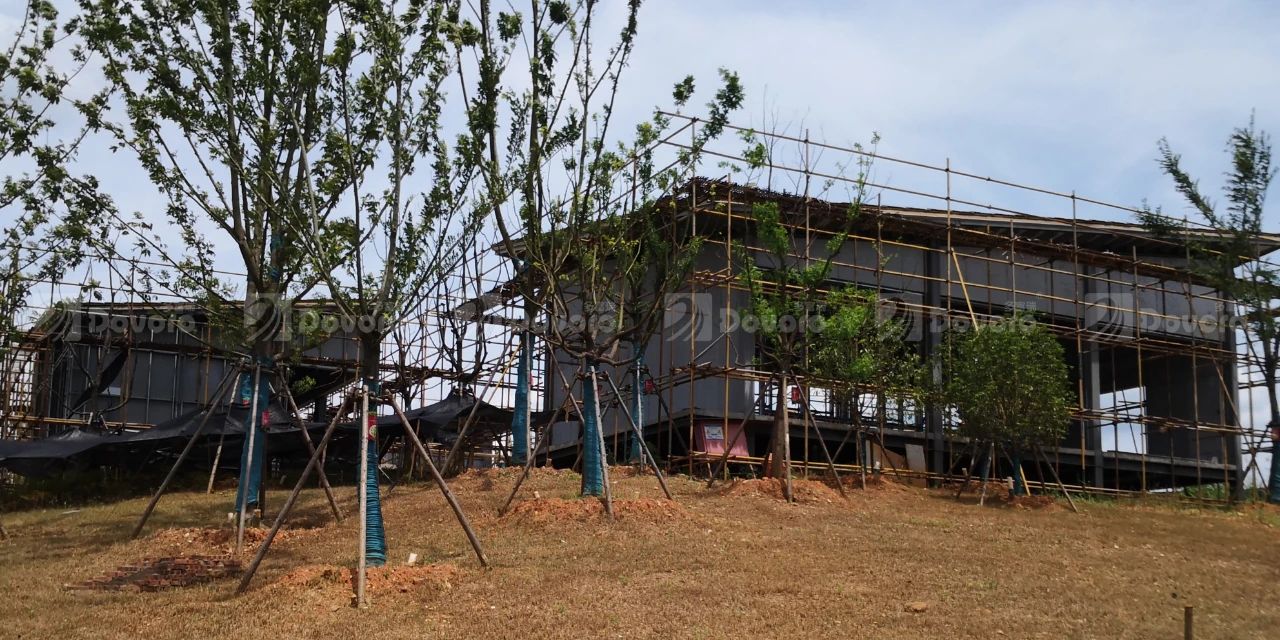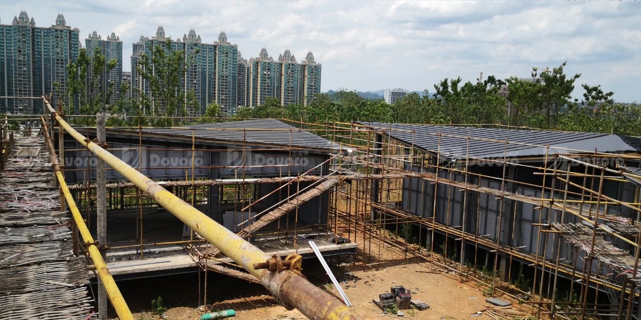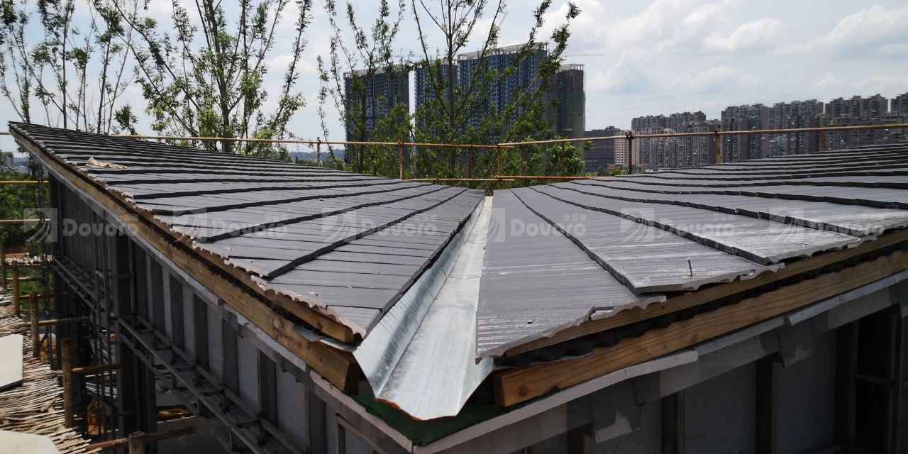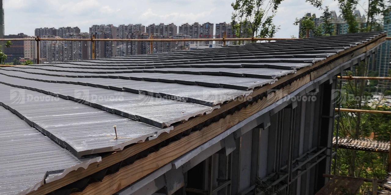 本項目中建筑采用鋼結(jié)構(gòu)裝配式設(shè)計,波形瀝青防水板可以在各類屋面基層上快速安裝。