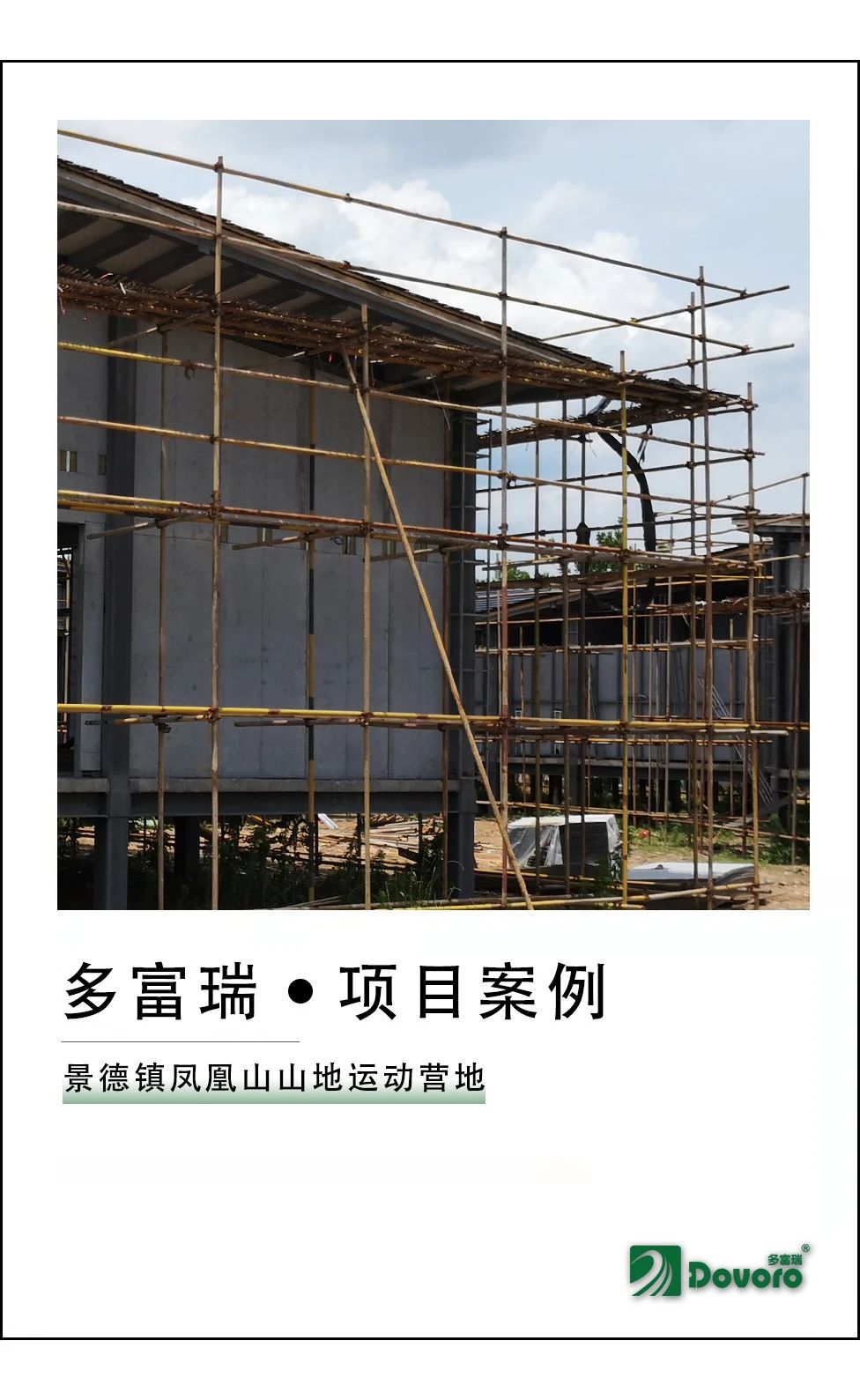 鳳凰山山地運(yùn)動營地位于江西省景德鎮(zhèn)珠山區(qū),是一個集休閑運(yùn)動、野外露營、生態(tài)旅游為一體的城市公園。本項目使用波形瀝青防水板作為瓦材下覆層施工,總施工面積約3500平米。
